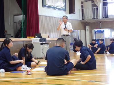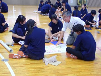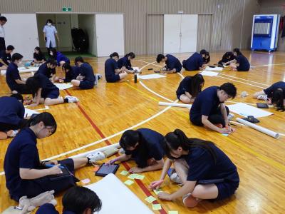 9月16日、主権者教育を目的とした高校生模擬議会の一環として、2年次生が「青森県の活性化」をテーマにグループワークを本校の第一体育館で実施しました。大学兼任講師(明治・淑徳・聖徳・江戸川)及び主権者教育アドバイザー(総務省)の藤井剛氏と県選挙管理委員会事務局の畠山裕太氏をコーディネーターとして、健康・人口・観光・農林水産業をテーマにKJ法を用いグループワークに取り組みました。生徒はグループの中で意見を出し合いながら、活動に熱心に取り組んでいました。今後は代表生徒が2月に実際に県議会に行き、議員の方々に施策を提案することとなります。今回は青森県の活性化について深く考え、自分たちの住んでいる県についてよく知るいい機会となりました。この活動をきっかけとし、少しでも選挙に意識を向ける生徒が増えてほしいですね。