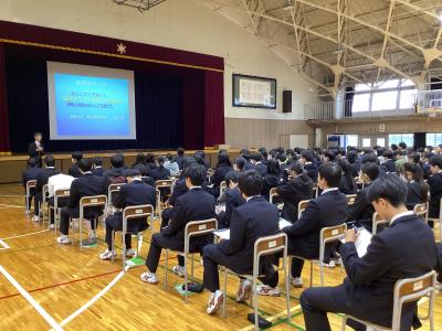 10月21日(火)1年次「産業社会と人間」の授業に、青森大学 総合経営学部 教授 沼田郷先生をお招きし、探究オリエンテーションを実施しました。生徒たちは、来年度の「総合的な探究の時間」に向け、テーマ設定や仮説立案をするためのヒントを得たり、沼田先生が実際に大学で行った事例を通して研究手法を学んだりしました。真剣に話を聴き、メモを取る生徒がたくさんいて、大変充実した時間となりました。